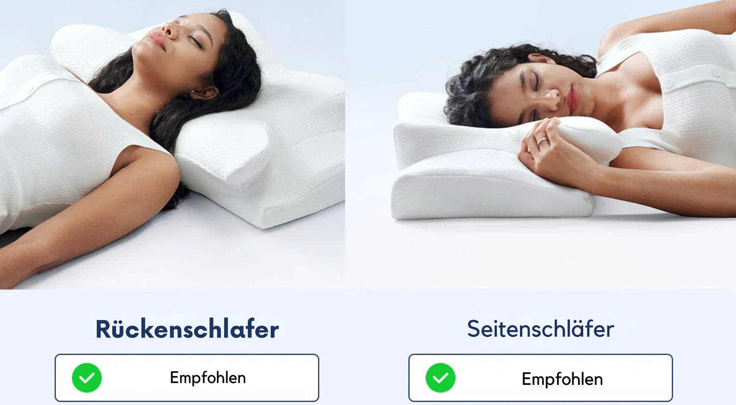 Antwort: Ja. Das Neckura™ passt sich flexibel an verschiedene Schlafpositionen an. Rücken- und Bauchschläfer profitieren ebenso von der ergonomischen Form und der druckentlastenden Unterstützung, auch wenn das Kissen primär für Seitenschläfer entwickelt wurde.